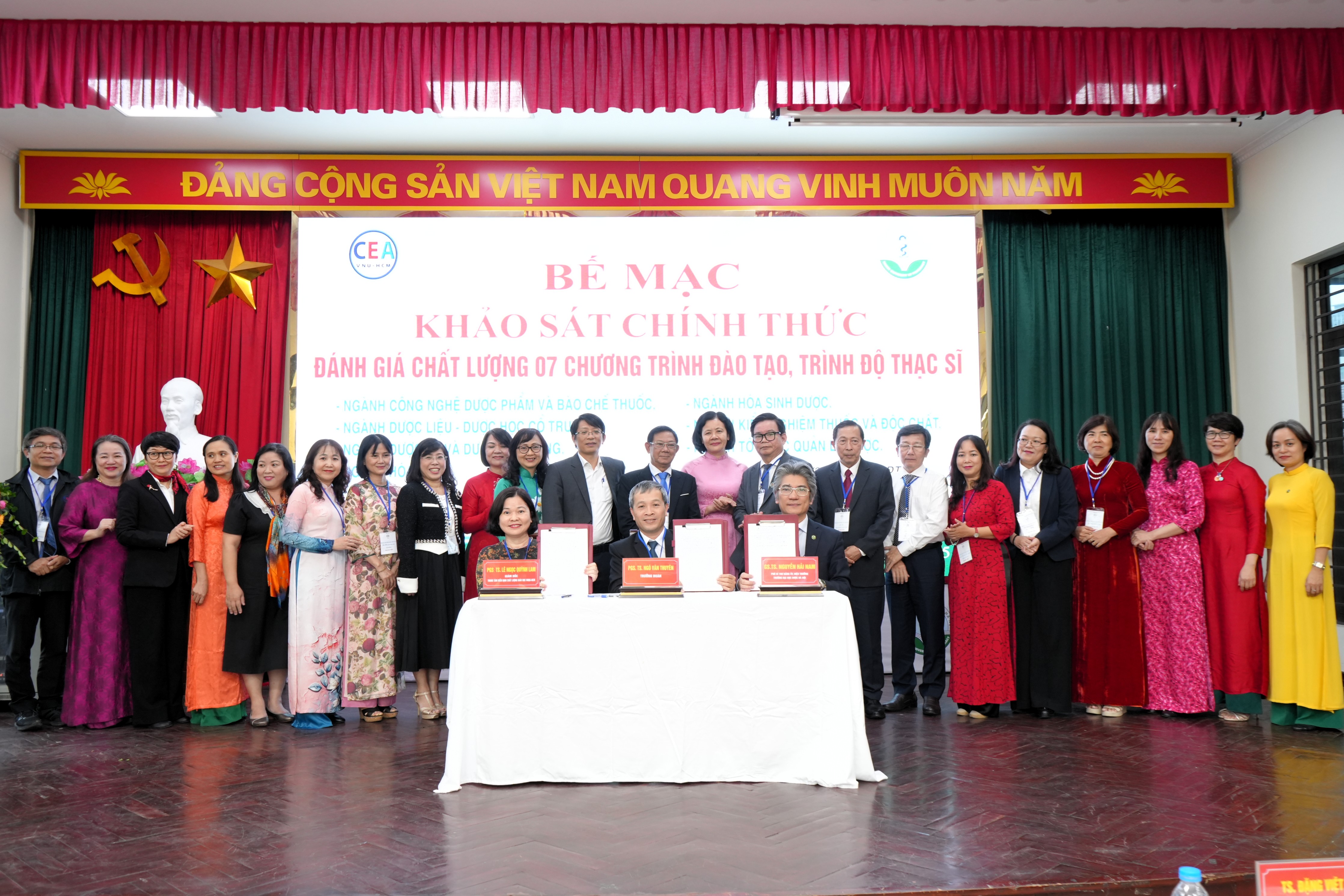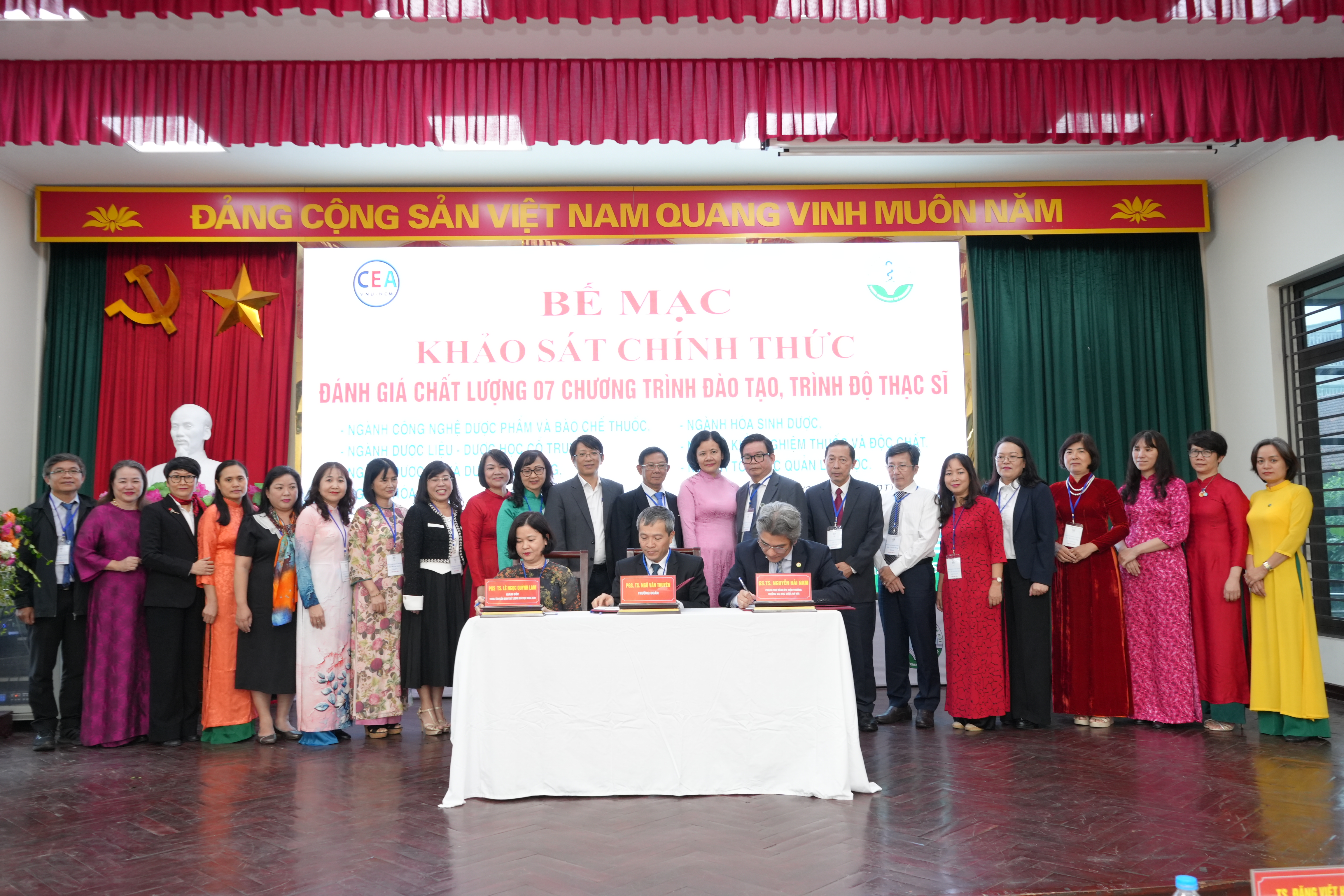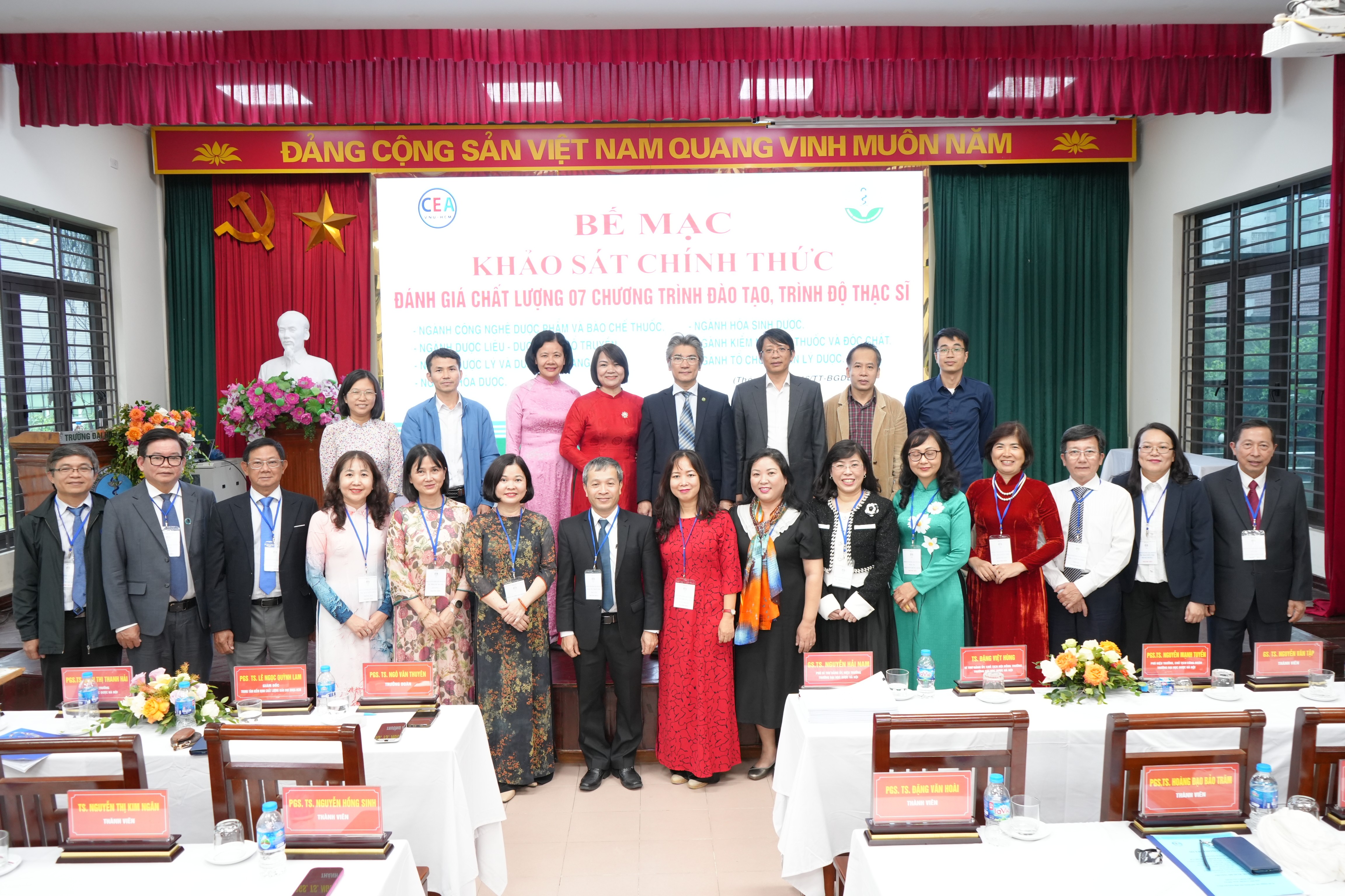 Chiều ngày 01/11/2025, tại Trường Đại học Dược Hà Nội đã diễn ra Lễ bế mạc đợt khảo sát chính thức đánh giá ngoài 07 chương trình đào tạo trình độ thạc sĩ, khép lại quá trình làm việc nghiêm túc, khoa học và đầy tâm huyết giữa Nhà trường và Trung tâm Kiểm định chất lượng giáo dục – Đại học Quốc gia Thành phố Hồ Chí Minh (CEA – ĐHQGHCM).