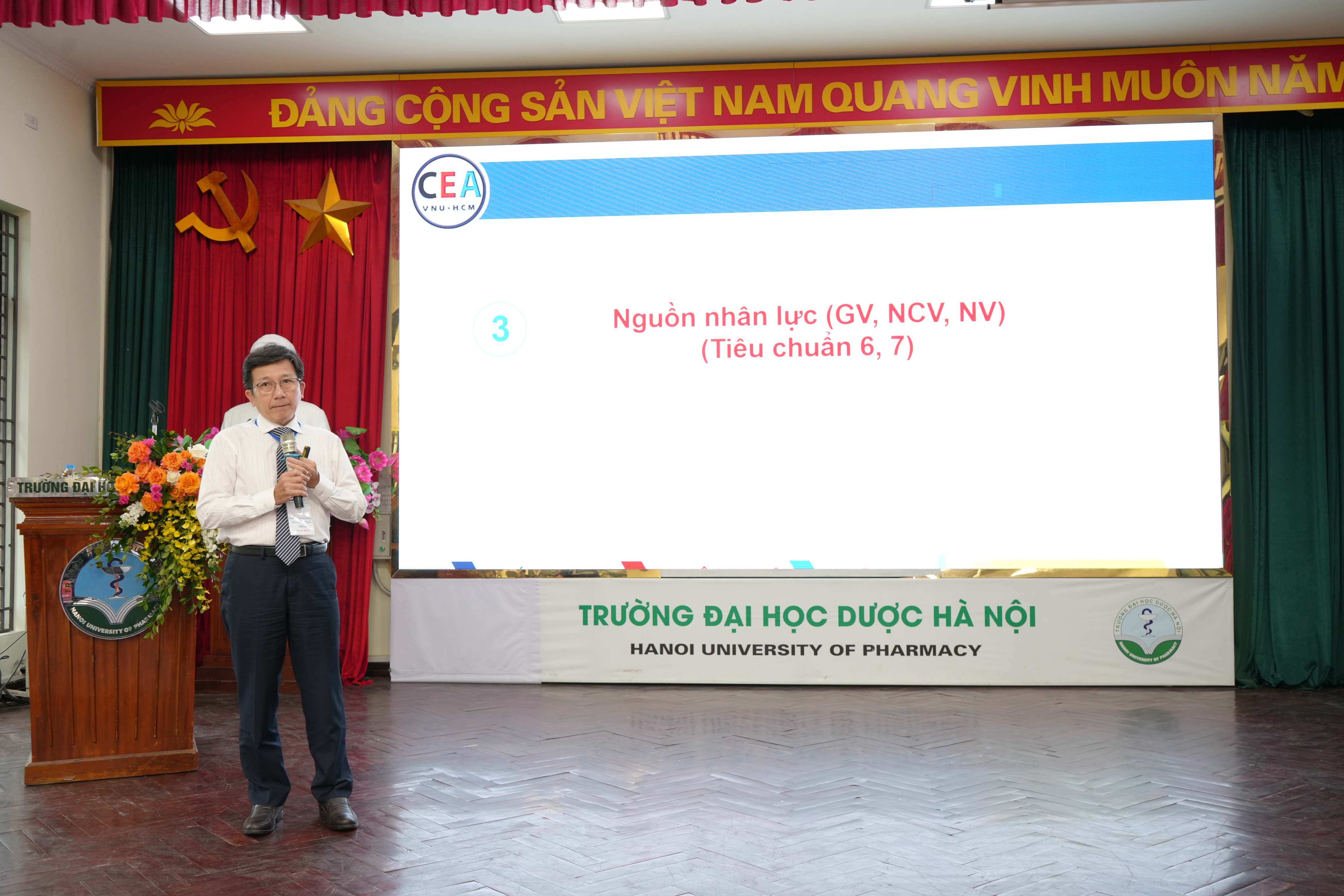 Về phía Trường Đại học Dược Hà Nội có GS.TS. Nguyễn Hải Nam – Phó Bí thư Đảng ủy, Hiệu trưởng Nhà trường, cùng các Phó Hiệu trưởng PGS.TS. Đinh Thị Thanh Hải, PGS.TS. Nguyễn Mạnh Tuyển, và lãnh đạo các đơn vị, các thành viên Hội đồng tự đánh giá, giảng viên, học viên và viên chức tham dự.