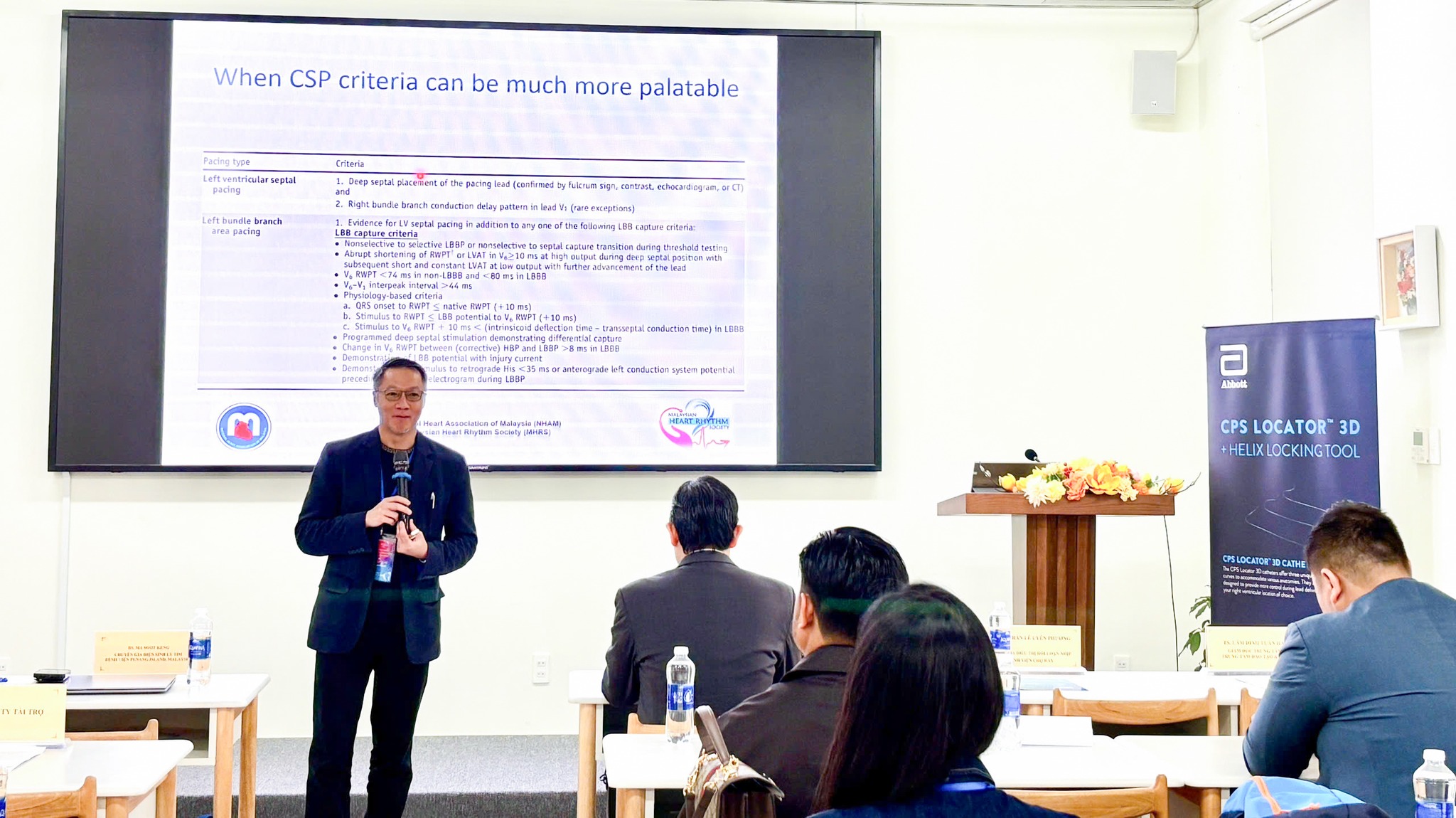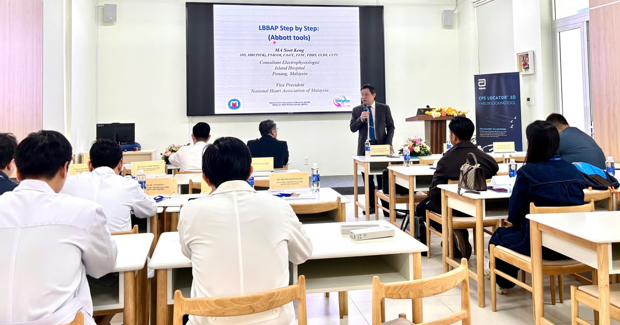 Hội thảo có sự tham dự của đội ngũ chuyên gia nhiều kinh nghiệm trong lĩnh vực điều trị tim mạch. Đặc biệt, chương trình còn có sự đồng hành của Dr. Ma Soot Keng – Bệnh viện Penang Island, Phó Chủ tịch Hội Rối loạn nhịp Malaysia, với vai trò giảng viên quốc tế và đồng chủ tọa, trực tiếp hướng dẫn các kỹ đặt máy tạo nhịp tim sinh lý (LBBAP và HBP) chuyên sâu bằng hệ thống Locator 3D. Sau các khóa dành cho học viên đến từ Hồng Kông, Ấn Độ, Malaysia, Campuchia, Lào và Myanmar, đây là lần thứ 5 khoa Điều trị Rối loạn nhịp bệnh viện Chợ Rẫy tổ chức chương trình đào tạo quốc tế về kỹ thuật tạo nhịp hệ thống dẫn truyền. Điều này, cho thấy mô hình đào tạo chuyên sâu của bệnh viện Chợ Rẫy ngày càng được quan tâm trong khu vực, nơi mà các bác sĩ quốc tế có thể tiếp cận nhiều kỹ thuật hiện đại và kinh nghiệm xử trí những ca bệnh khó, đặc biệt là ở lĩnh vực điện sinh lý tim mạch.