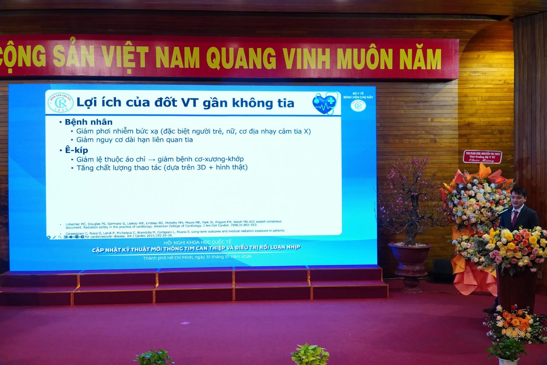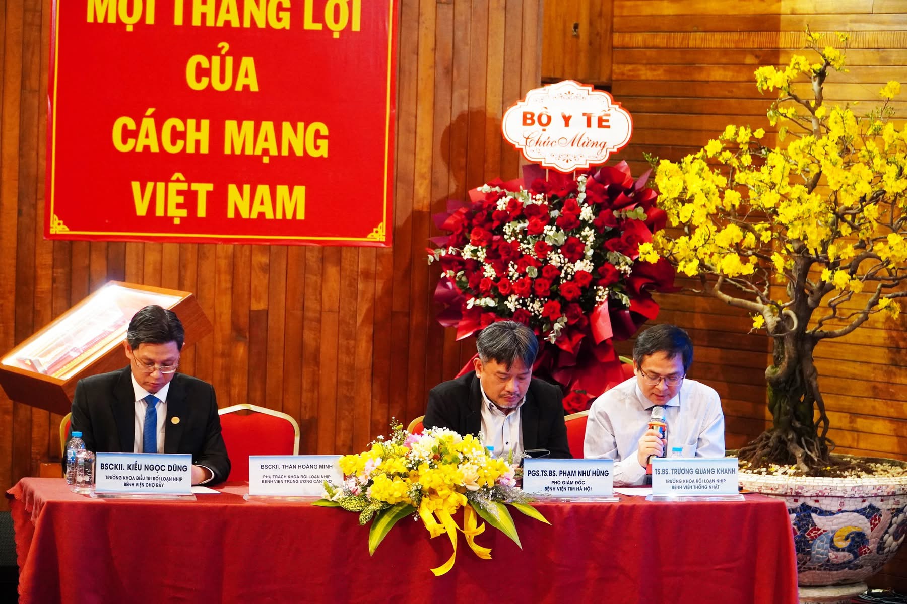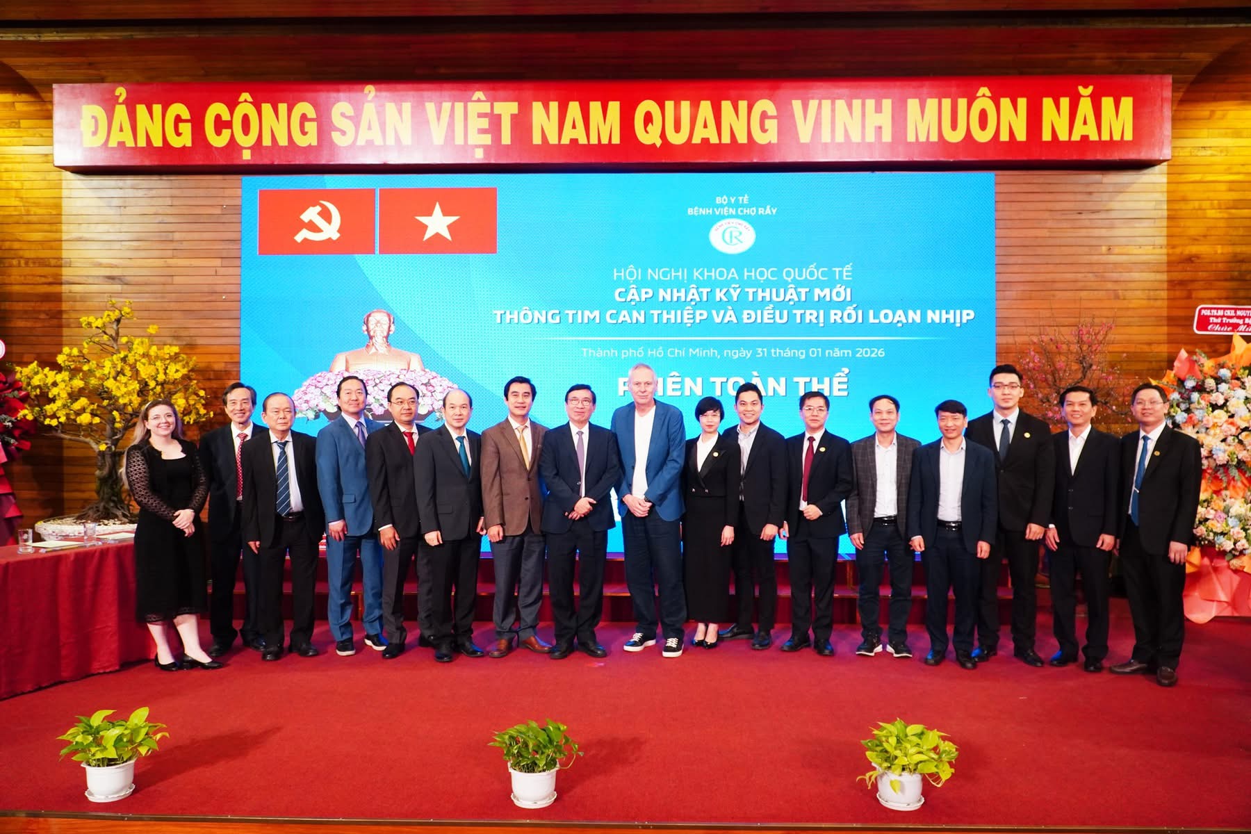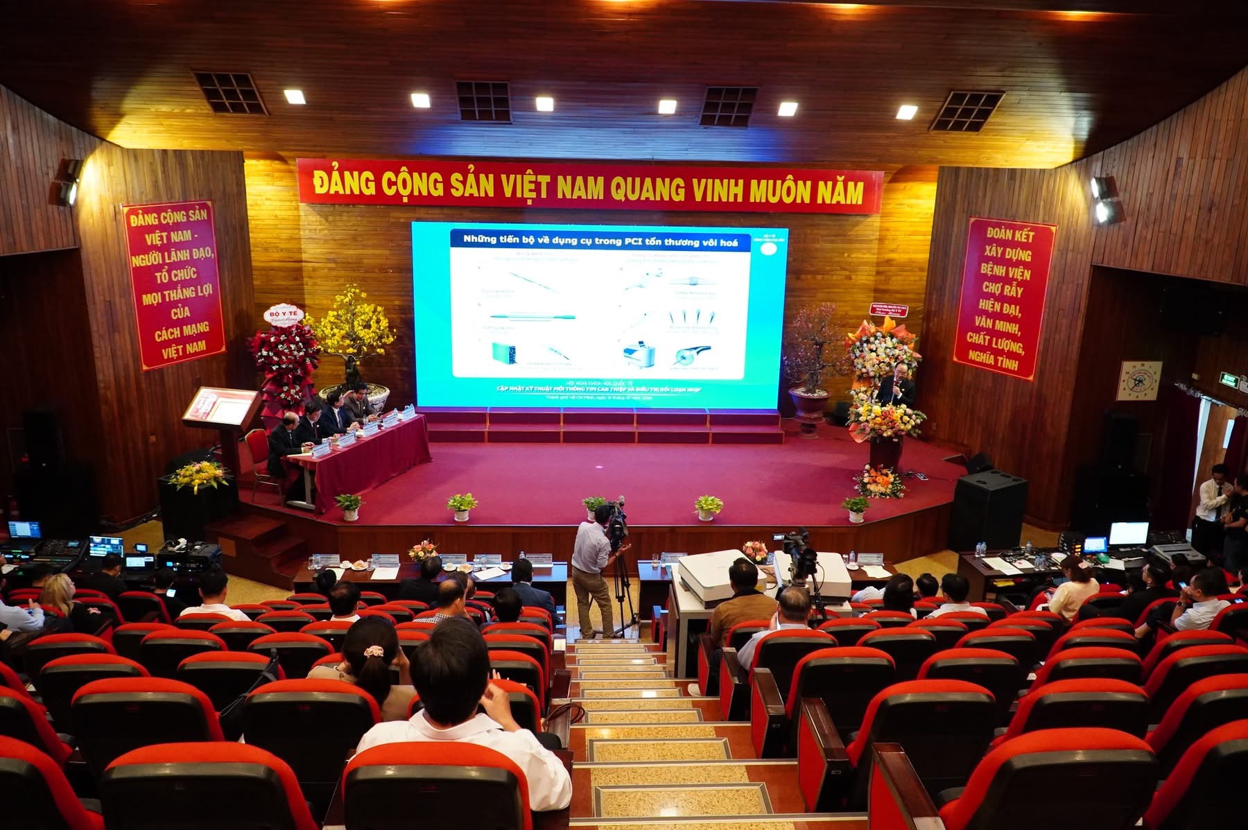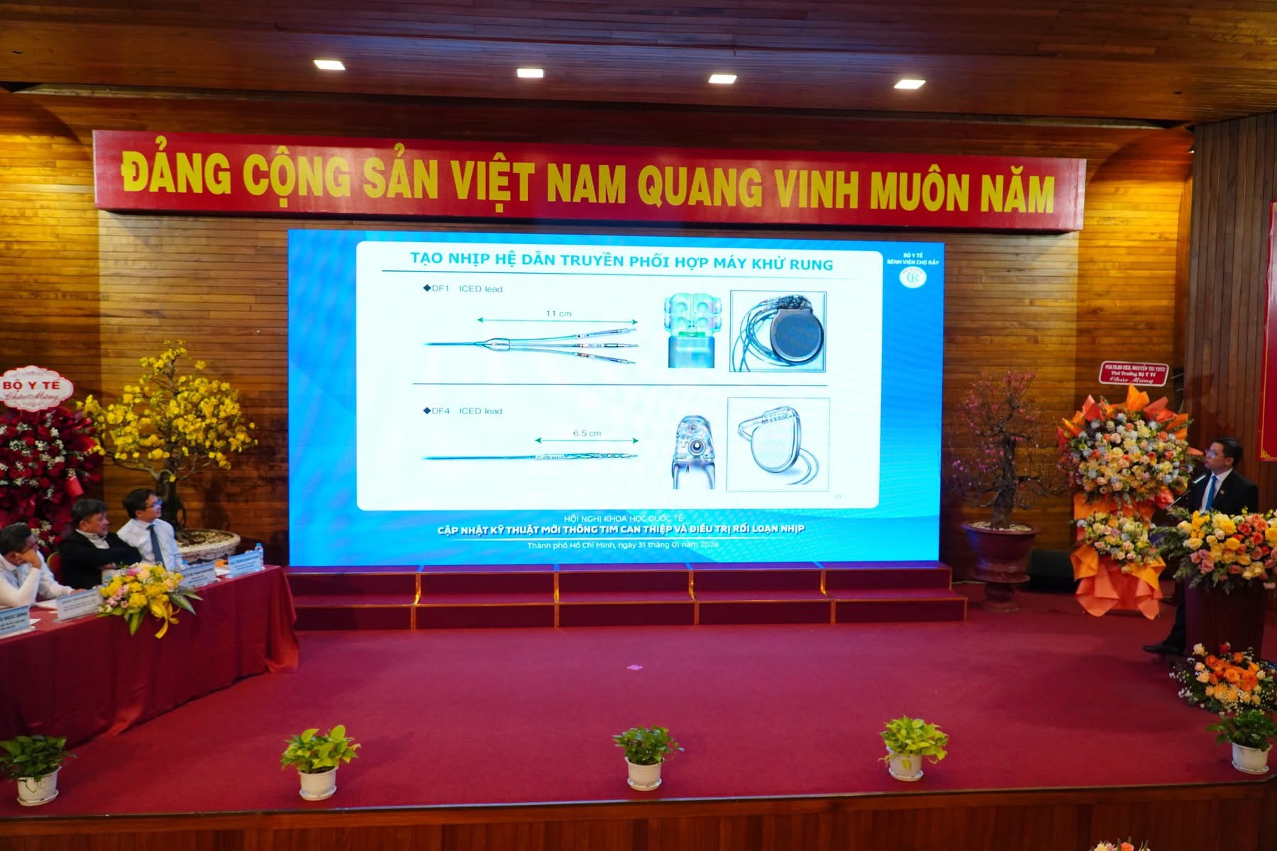 Ngoài ra, trong khuôn khổ chương trình, Hội nghị khoa học quốc tế “Cập nhật kỹ thuật mới thông tim can thiệp và điều trị rối loạn nhịp” cũng đã được tổ chức với 01 phiên toàn thể và 04 phiên chuyên đề, mang đến 20 bài báo cáo và 2 ca thảo luận – thị phạm trực tiếp, tập trung vào 2 lĩnh vực chính là Tim mạch can thiệp và Điều trị rối loạn nhịp. Các nội dung được trình bày xoay quanh nhiều chủ đề mang tính chuyên sâu như: Thay đổi trong điều trị bệnh lý Rối loạn nhịp thất: Công cụ mới – Phương thức mới; Các vấn đề thường gặp khi tạo nhịp hệ dẫn truyền; Các thay đổi trong điều trị mạch vành và tim cấu trúc; Xu hướng mới trong can thiệp bệnh mạch vành phức tạp qua da….Có thể nói, với sự tham gia của nhiều chuyên gia hàng đầu trong nước và quốc tế, Hội nghị đã mang đến các bài báo cáo khoa học có giá trị thực tiễn cao, cập nhật nhiều phương pháp điều trị tiên tiến trong lĩnh vực tim mạch. Chương trình đã diễn ra tốt đẹp, thành công thu hút hơn 300 đại biểu tham dự đến từ nhiều tỉnh, thành trên cả nước.
