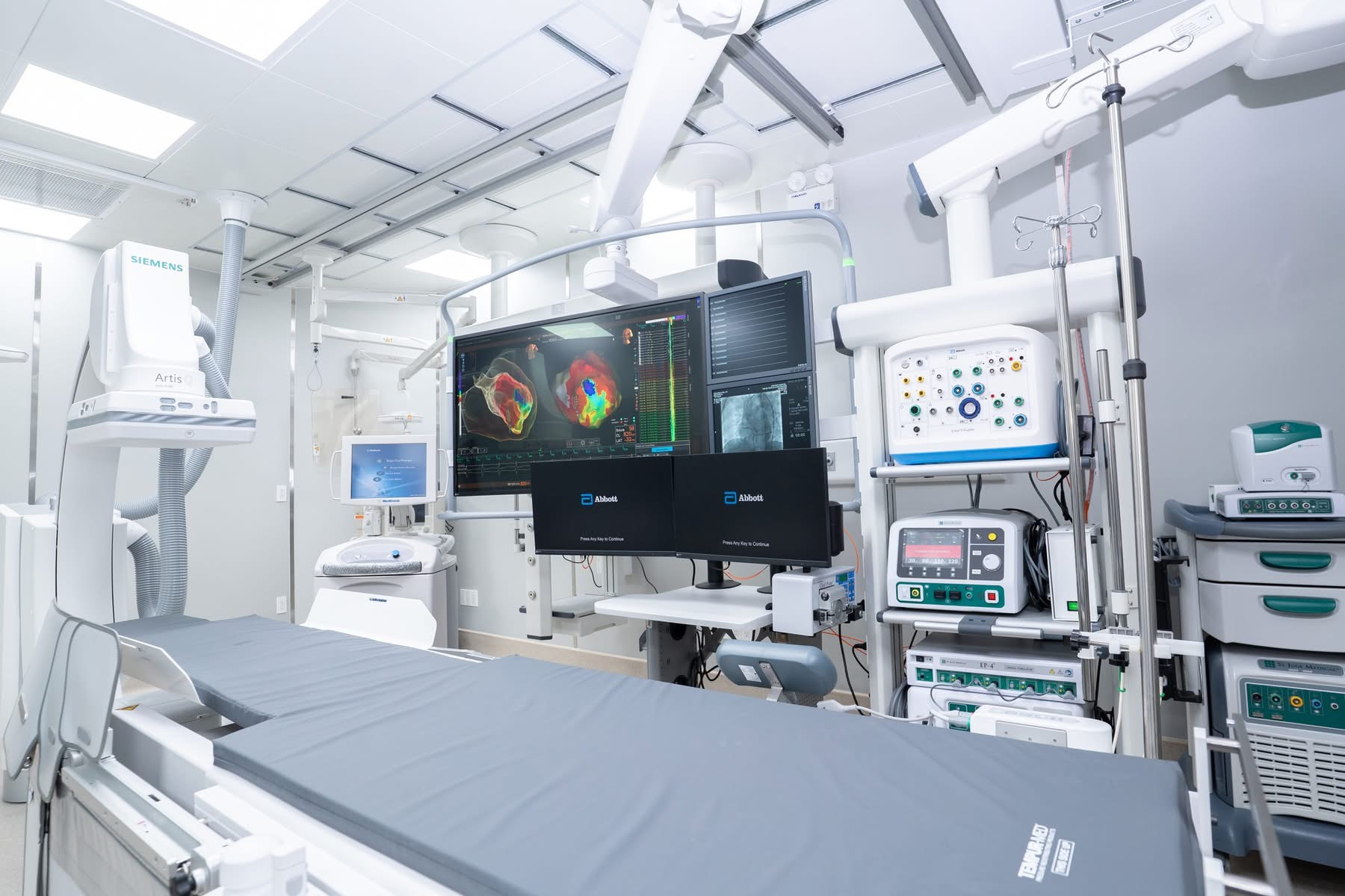 Bên cạnh đó, phòng thông tim cũng được trang bị đầy đủ các thiết bị hỗ trợ huyết động trong can thiệp tim mạch phức tạp như: bóng đối xung nội động mạch chủ (IABP), Máy tim phổi nhân tạo ngoài cơ thể (ECMO)… cùng các hệ thống siêu âm, khảo sát hình ảnh nội mạch như IVUS; OCT, hệ thống máy móc phục vụ quá trình can thiệp như khoan các mảng xơ vữa (đây là kỹ thuật mà bệnh viện Chợ Rẫy tiên phong thực hiện và đào tạo); bóng phá vôi nội mạch; qua đó giúp xử trí hiệu quả những ca bệnh phức tạp (như tắc nghẽn mãn tính, mãng xơ vữa vôi hóa nặng) và nguy cơ cao tử vong cao như sốc tim.