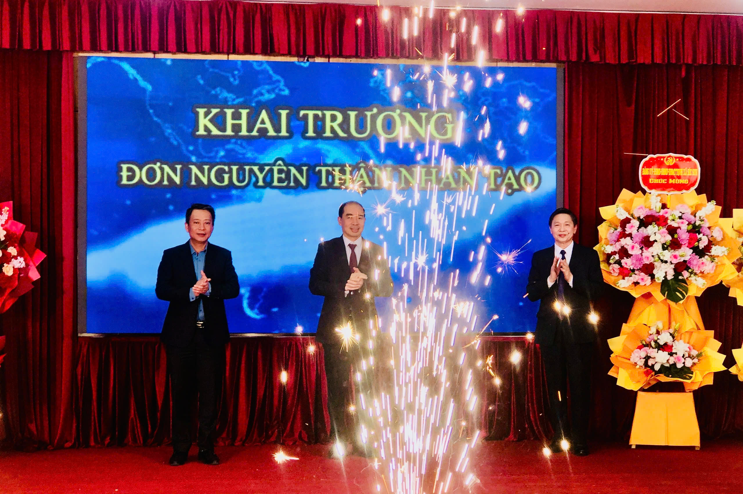 Các đồng chí lãnh đạo bấm nút khai trương Đơn nguyên thận nhân tạo.