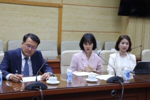 Ông Kim Hyoung Ki, Phó Chủ tịch kiêm Tổng Giám đốc Tập đoàn Celltrion Hàn Quốc và bà Hàn Thị Khánh Vinh (áo vest trắng) Thành viên Hội đồng quản trị, Tổng Giám đốc Tổng công ty Dược Việt Nam – CTCP (Vinapharm) tại buổi làm việc