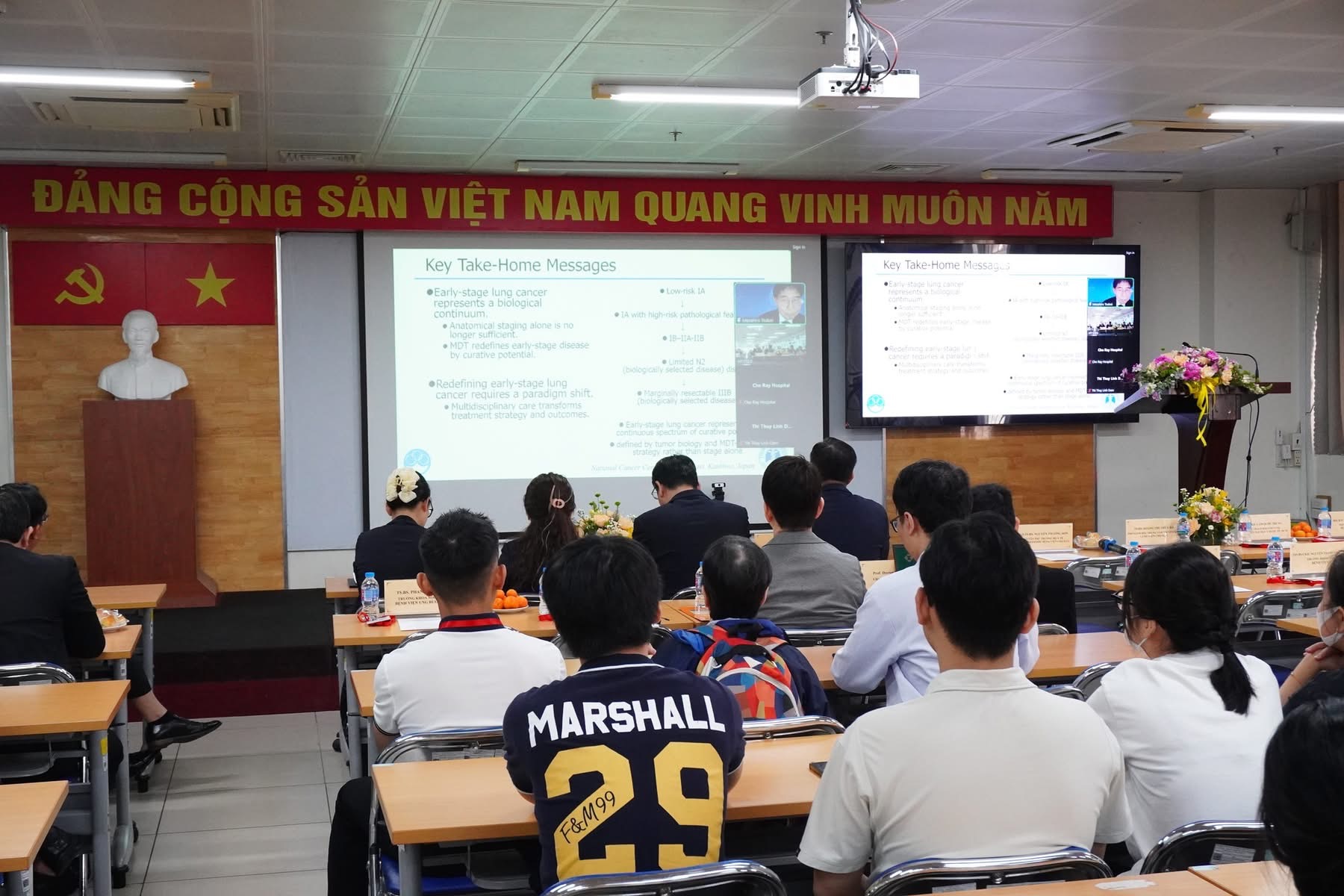 Hội nghị Mùa xuân Trung tâm Ung bướu bệnh viện Chợ Rẫy được tổ chức bao gồm 1 phiên toàn thể, 1 phiên hội thảo chuyên gia với chủ đề “Tiêm dưới da phối hợp thuốc kháng kép HER2 trong ung thư vú” và 2 phiên chuyên đề về “Các tiến bộ trong điều trị ung thư vú, phổi và tiết niệu” & “Các tiến bộ trong điều trị ung thư gan và đường tiêu hóa”. Trong khuôn khổ Hội nghị, 28 bài báo cáo khoa học mang tính thực tiễn cao đã được trình bày, cập nhật nhiều kiến thức chuyên môn và kỹ thuật hiện đại trong điều trị ung thư như: Tái định nghĩa điều trị ung thư phổi giai đoạn sớm: Sức mạnh của tiếp cận đa chuyên khoa; Cải thiện chất lượng điều trị song hành cùng hiệu quả lâm sàng với phối hợp kháng kép HER2 tiêm dưới da; Phẫu thuật nội soi tái tạo vú cho bệnh nhân ung thư vú: Cách tiếp cận và kết quả sớm; Cập nhật ESMO 2025 dữ liệu đời thực trong điều trị uHCC với bộ đôi Atezolizumab và Bevacizumab…Đặc biệt, bên cạnh đội ngũ chuyên gia giàu kinh nghiệm trong nước, Hội nghị còn có sự tham dự của 7 báo cáo viên quốc tế (trực tiếp và trực tuyến) đến từ Nhật Bản, Trung Quốc, Hoa Kỳ và khối UAE, góp phần mang đến góc nhìn đa chiều và cập nhật xu hướng điều trị ung thư trên thế giới.