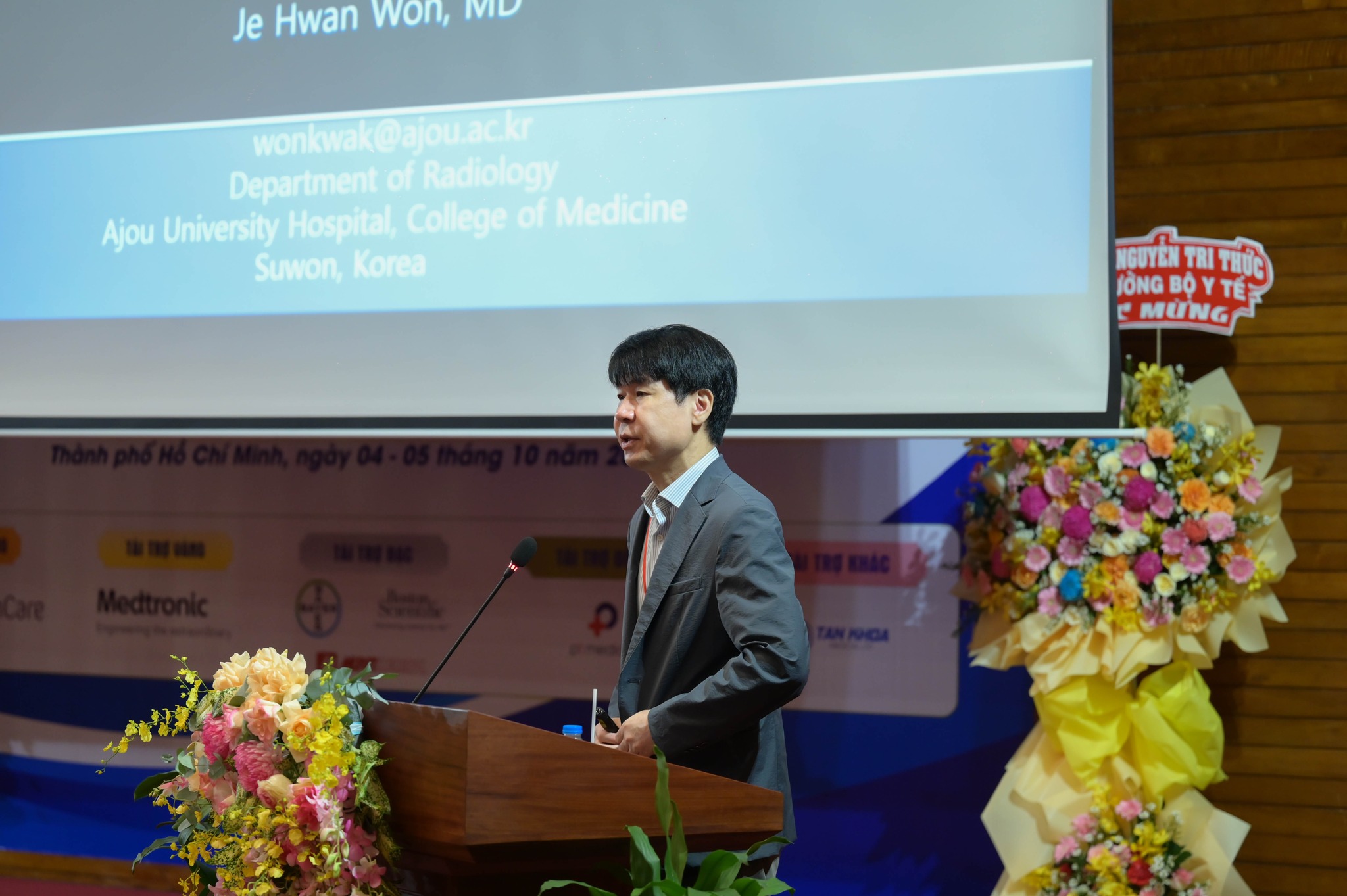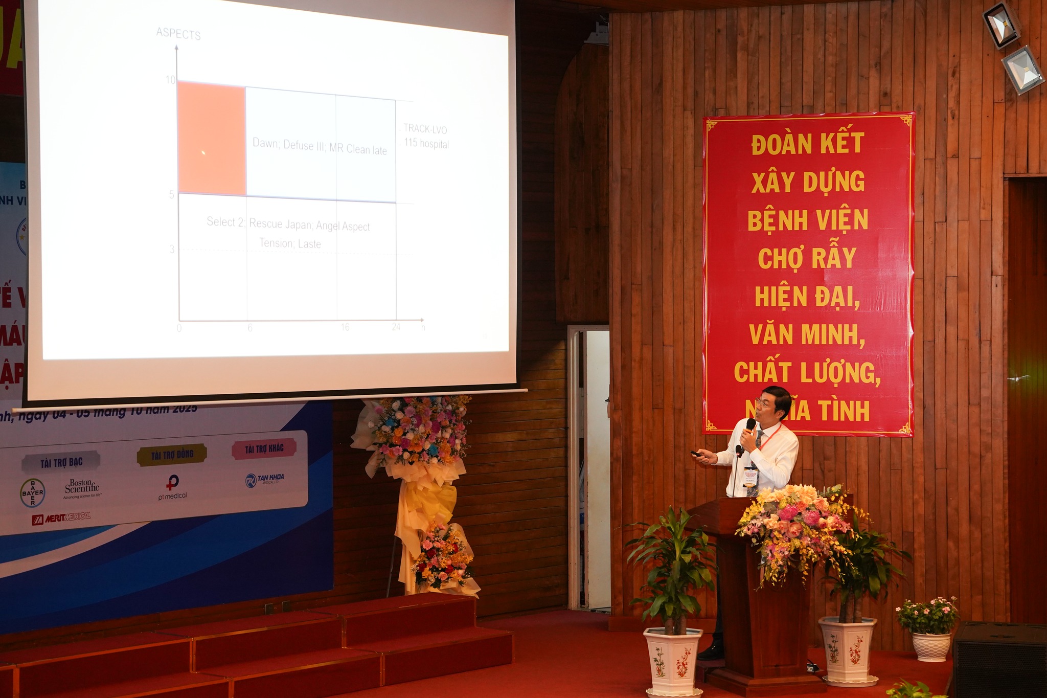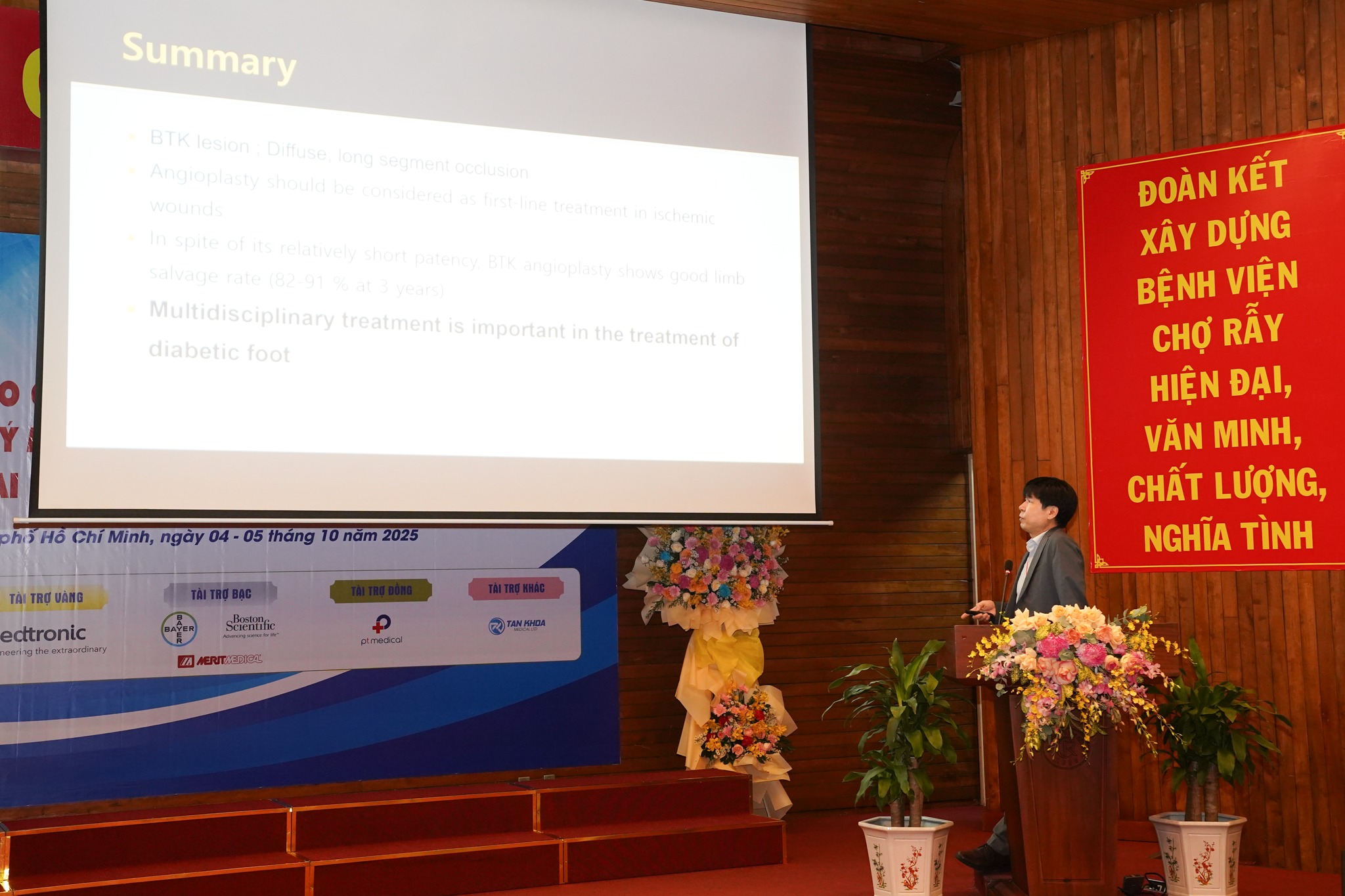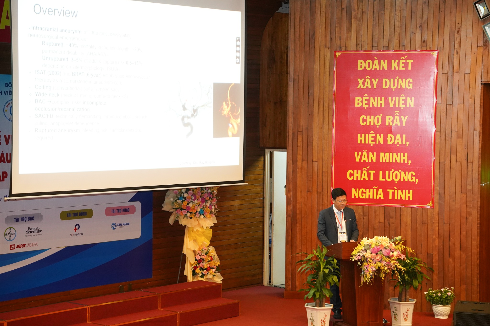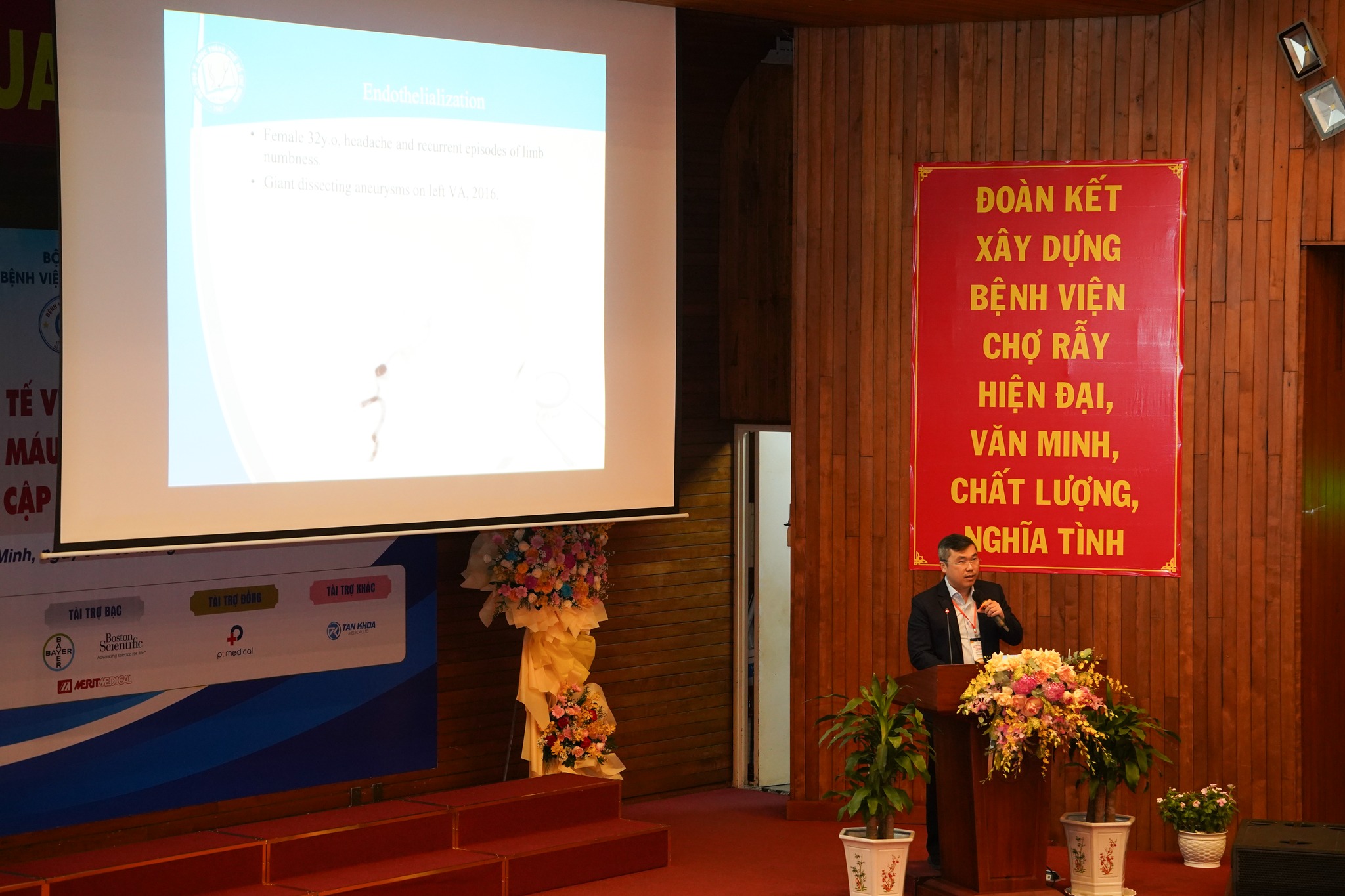 Hội thảo quốc tế “Can thiệp nội mạch điều trị bệnh lý mạch máu thần kinh, mạch máu tạng và ngoại biên: Cập nhật các tiến bộ mới” gồm 2 phiên chuyên đề do các chuyên gia đầu ngành, đang công tác tại các bệnh viện khu vực phía Nam trình bày, mang đến 7 bài báo cáo chuyên sâu gồm Can thiệp nội mạch trong xử lý biến chứng của tăng áp lực tĩnh mạch cửa; Lựa chọn vật liệu thuyên tắc trong can thiệp mạch máu ngoại biên, kinh nghiệm tại Bệnh viện Nhân dân Gia Định; Stent chuyển dòng trong điều trị phình động mạch não: tip and trick; Điều trị phình động mạch não bằng dụng cụ chuyển hướng dòng chảy nội túi phình; Can thiệp nội mạch trong điều trị dò động tĩnh mạch màng cứng: kinh nghiệm tại bệnh viện Chợ Rẫy; Sử dụng Coil lông trong điều trị dò động mạch cảnh xoang hang: kinh nghiệm tại BV Đại học Y dược. Đặc biệt, chương trình còn có sự tham dự của 2 chuyên gia quốc tế là GS TS BS Won Je Hwan – Chủ tịch Hội Điện quang can thiệp tim-mạch máu Châu Á-Thái Bình Dương (Hàn Quốc) và TS BS Alex A. L. Tang – Phó Chủ tịch Hội Điện quang Can thiệp Malaysia, đã mang đến một bức tranh tổng thể liên quan đến kỹ thuật điều trị bệnh lý mạch máu khu vực Châu Á – Thái Bình Dương như Can thiệp động mạch đoạn dưới gối: chúng tôi làm như thế nào?; Can thiệp lấy mảng xơ vữa động mạch: cách lựa chọn thiết bị phù hợp?; Ứng dụng Hepasphere TACE trong điều trị ung thư biểu mô tế bào gan (HCC) phức tạp và di căn gan.
