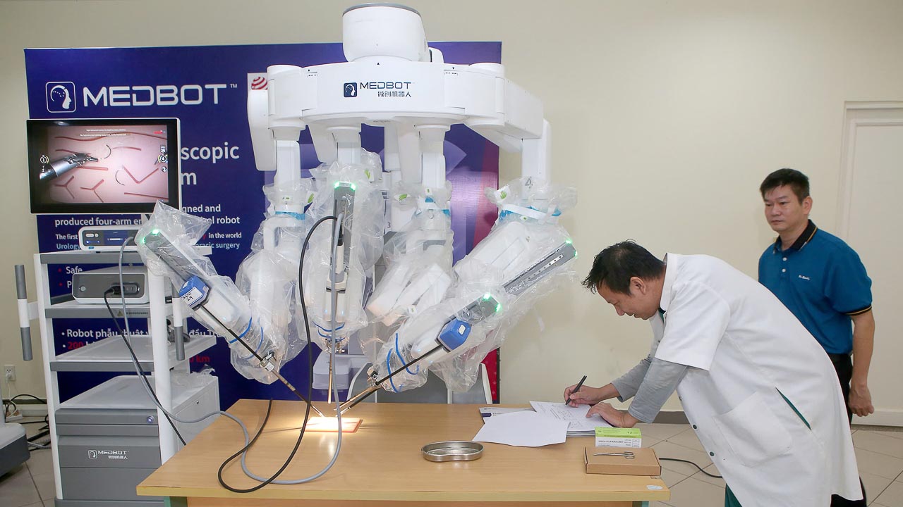 Hệ thống robot phẫu thuật nội soi Toumai được trưng bày và trải nghiệm tại BVTW Huế