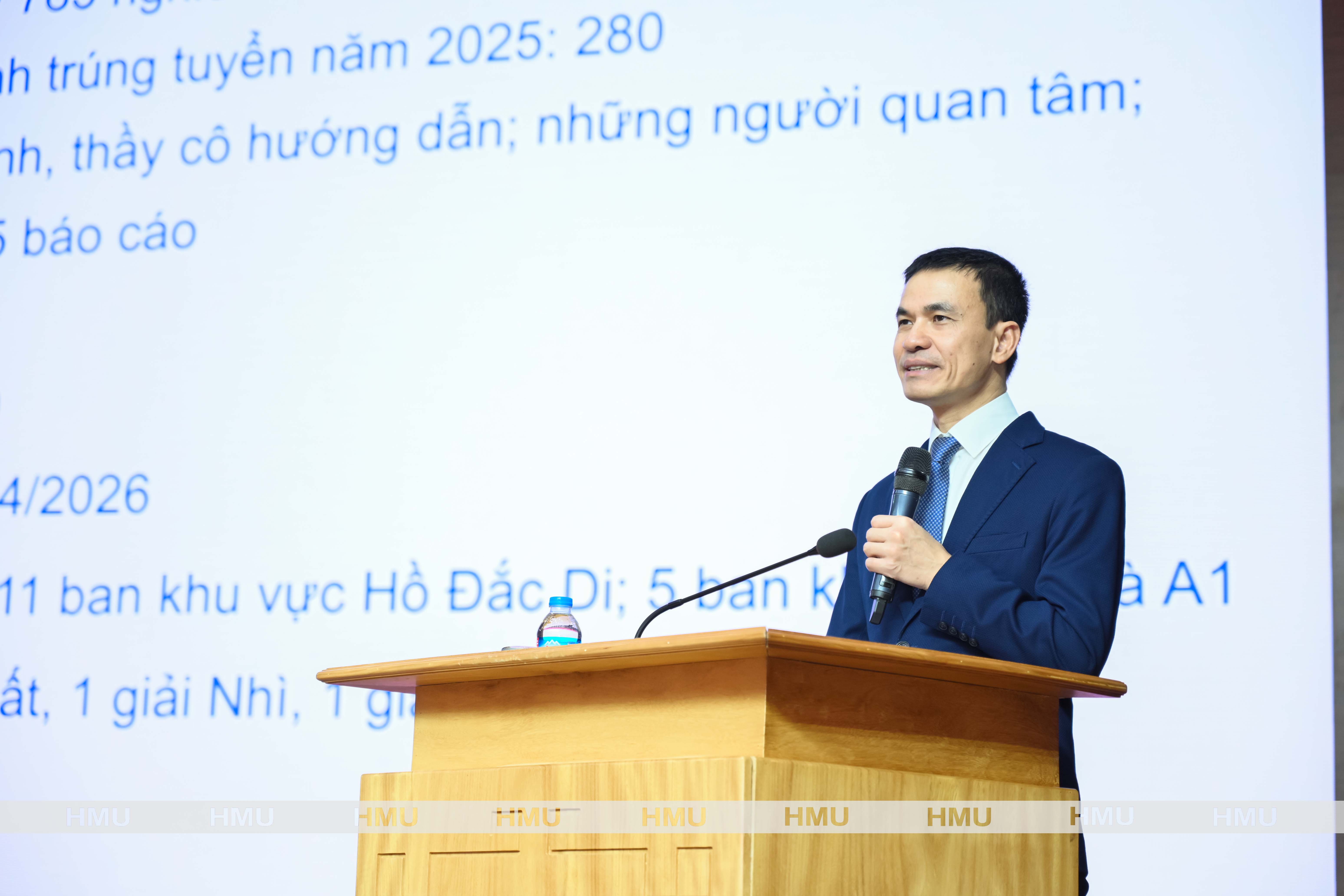 Hiệu trưởng bày tỏ lời cảm ơn sâu sắc tới hơn 80 thành viên Ban Giám khảo – là các giáo sư, chuyên gia đầu ngành và lãnh đạo các cơ sở y tế Trung ương và Hà Nội – đã dành trọn thời gian tham gia hội nghị. Theo GS Nguyễn Hữu Tú, đây chính là lực lượng đảm bảo chất lượng và chuẩn mực học thuật cho các công trình nghiên cứu.