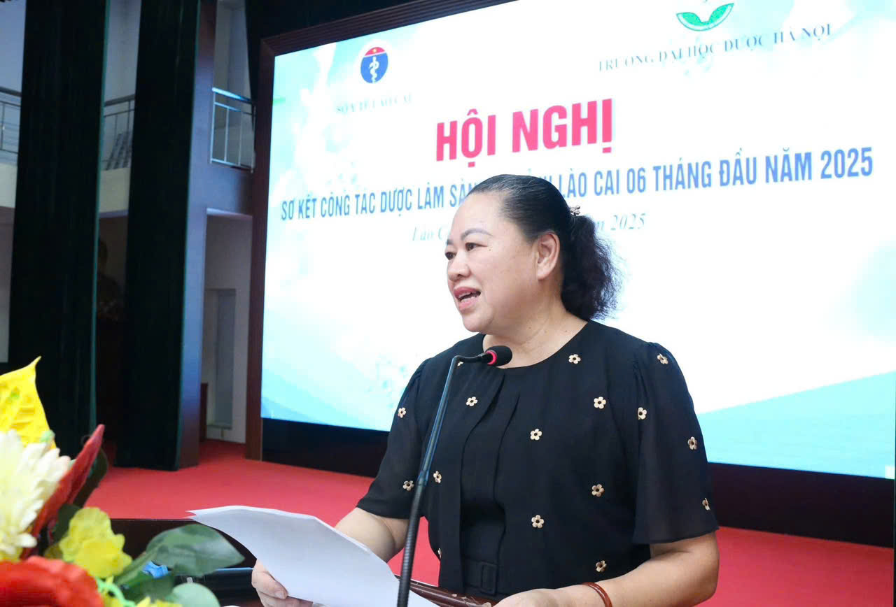 Phát biểu khai mạc Hội nghị, BSCKII. Phạm Bích Vân, Phó giám đốc Sở Y tế gửi lời cảm ơn sự hỗ trợ của Trường Đại học Dược trong thời gian vừa qua đã giúp công tác dược của ngành Y tế tỉnh Lào Cai (cũ) đạt được nhiều kết quả quan trọng; đồng thời đánh giá cao những nỗ lực của các đơn vị y tế đã tham gia trong giai đoạn đầu trên địa bàn tỉnh.