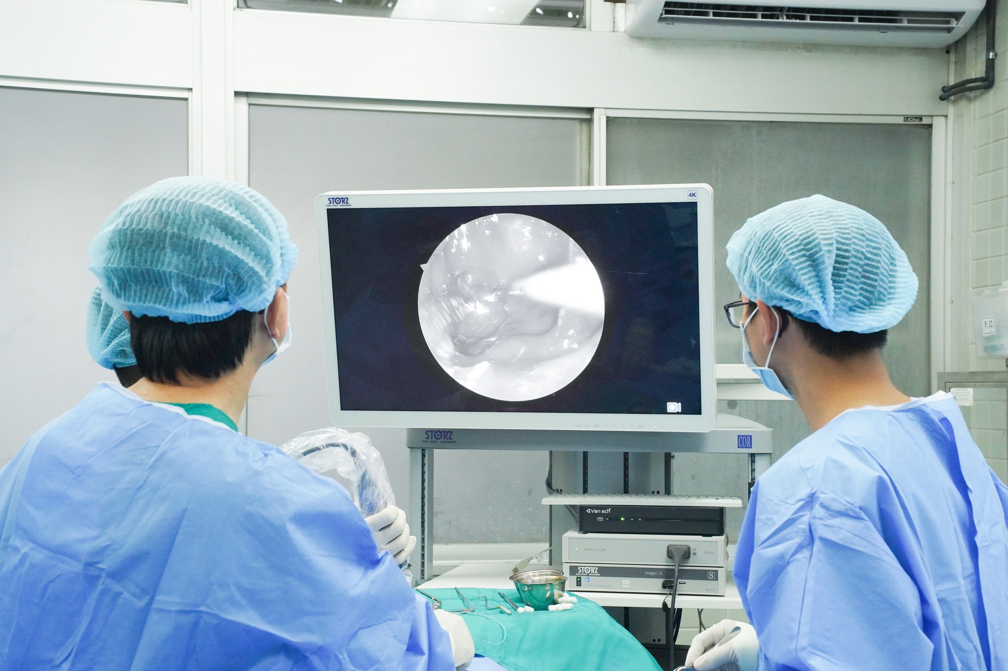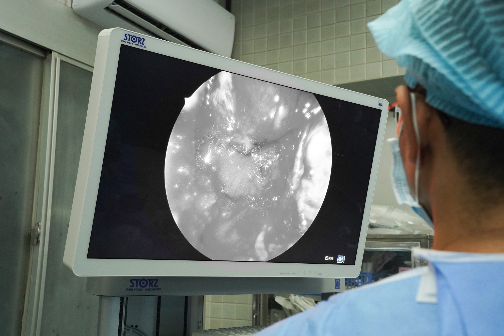 Trước tình trạng đó, ê-kíp điều trị đã quyết định thực hiện phẫu thuật nội soi qua đường mũi – xoang bướm, vốn là kỹ thuật thường quy tại khoa Ngoại thần kinh bệnh viện Chợ Rẫy. Tuy nhiên, điểm đặc biệt trong trường hợp này là ê-kíp đã sử dụng Hệ thống phẫu thuật nội soi Thần kinh 4K – ICG, 1 công nghệ hiện đại được bệnh viện Chợ Rẫy – cơ sở y tế đầu tiên tại Việt Nam, đưa vào ứng dụng từ giữa năm 2025. Hệ thống nội soi được trang bị các chức năng chuyên biệt cho phẫu thuật ngoại thần kinh, với thiết kế ống soi nhỏ gọn, chiều dài rút ngắn, chủ yếu sử dụng ống cứng và góc nhìn của scope đa dạng: 0 độ; 30 độ….
