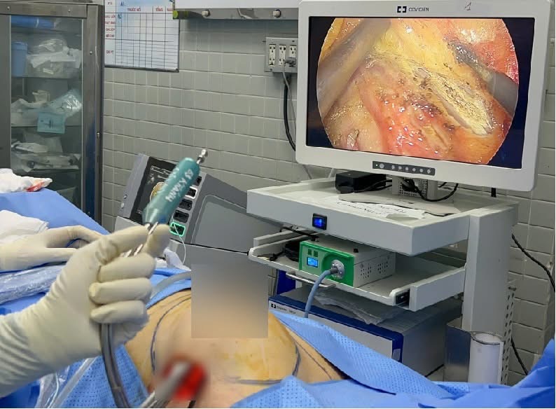 Đây là kỹ thuật mới ở Việt Nam, với đường mổ nhỏ 4cm dưới nếp nách 2 bên để thực hiện kỹ thuật sinh thiết hạch lính gác, qua đó các bác sĩ sẽ tiến hành tạo khoang và cắt tuyến vú hoàn toàn bằng nội soi, sau đó tái tạo lại tuyến vú tức thì bằng túi độn. Với kỹ thuật này, phẫu thuật nhanh, ít đau, sẹo mổ ngắn, thẩm mỹ… đảm bảo được việc điều trị triệt để căn bệnh ung thư vú đồng thời giữ được vẻ đẹp cho người phụ nữ. Bệnh nhân H. chỉ nằm viện 6 ngày cho quá trình điều trị và theo dõi.