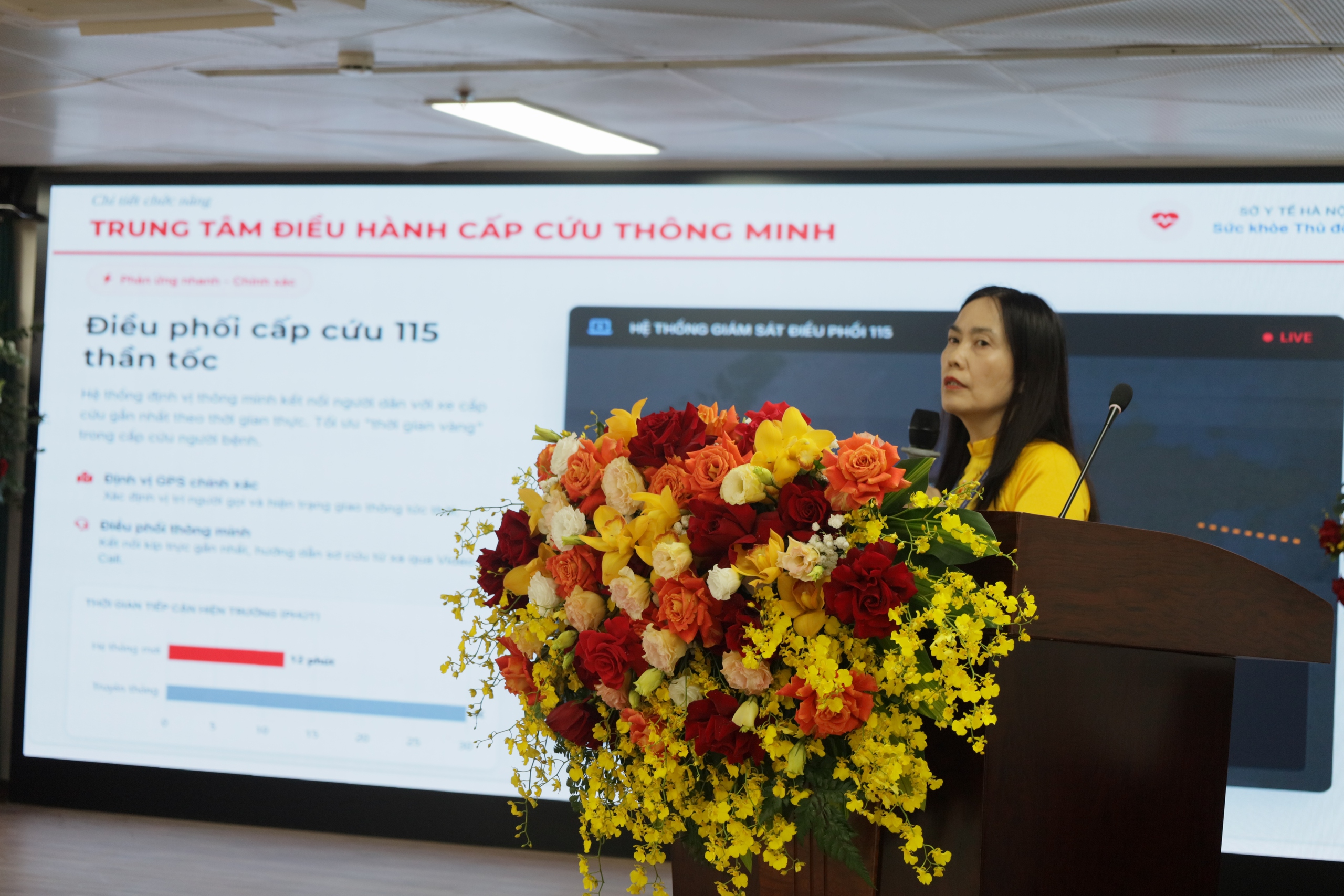 “Đối với mạng lưới về công nghệ thông tin và chuyển đổi số, có trên 300 kĩ sư công nghệ thông tin của toàn ngành. Kết nối được với cả trạm y tế, các bệnh viện tư nhân và thời gian tới sẽ kết nối cả các bệnh viện trung ương và các bệnh viện bộ, ngành trên địa bàn. Từ đó mạng lưới sẽ lớn mạnh và chia sẻ được với nhau rất nhiều. Về mạng lưới cấp cứu ngoại viện, sau khi triển khai gần 2 tháng, đến nay có 65 đơn vị tham gia vào mạng lưới cấp cứu ngoại viện, trên 50% số bệnh viện tham gia vào chuỗi cấp cứu ngoại viện. Trên 70% số bệnh viện có mạng lưới cấp cứu có xe cấp cứu đã tham gia vào mạng lưới cấp cứu ngoại viện. Mong rằng sau đây sẽ lan tỏa và phấn đấu 100% các bệnh viện có hệ thống cấp cứu ban đầu và có xe cấp cứu sẽ tham gia mạng lưới này để người dân được tiếp cận với y tế ban đầu sớm hơn. Tại Thủ đô sẽ được thực hiện đa hình thức cấp cứu, đa phương tiện cấp cứu, trong đó có cả mô tô sẽ tham gia cấp cứu, đến từng ngõ ngách.” – TS Nguyễn Trọng Diện nhấn mạnh