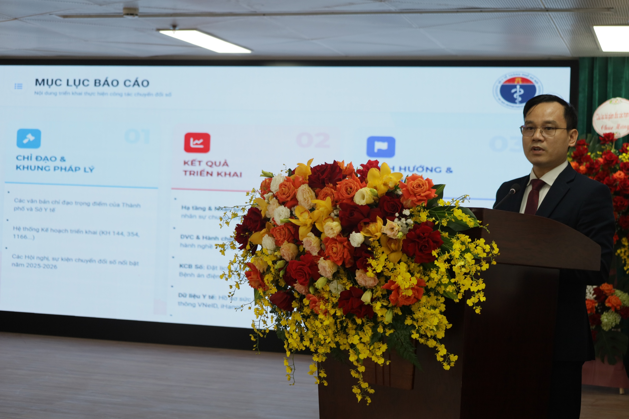 TS.BSCKII Đỗ Viết Tuyến – Trưởng phòng Quản lý BHYT và CNTT, Sở Y tế báo cáo nội dung công tác chuyển đổi số lĩnh vực y tế.
