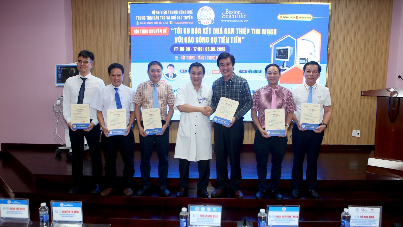 Ngày 5/9, Bệnh viện Trung ương (BVTW) Huế phối hợp cùng Công ty Boston Scientific Việt Nam tổ chức chương trình đào tạo chuyên sâu về can thiệp tim mạch với chủ đề “Tối ưu hóa kết quả can thiệp tim mạch với các công cụ tiên tiến”.