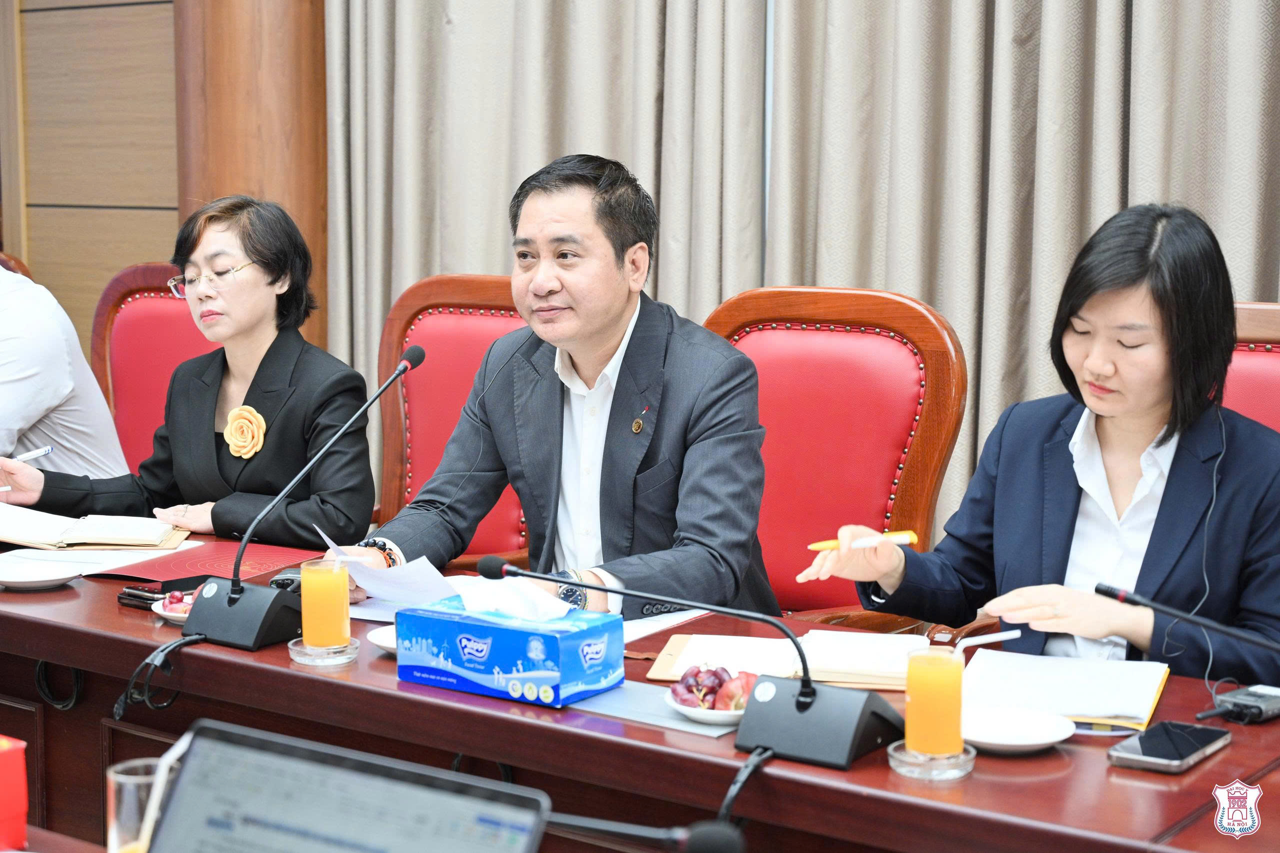 Tham dự buổi làm việc có lãnh đạo cấp cao ba bên. Về phía Trường Đại học Y Hà Nội có GS.TS Nguyễn Hữu Tú – Hiệu trưởng; PGS.TS Kim Bảo Giang – Phó Hiệu trưởng; cùng đại diện lãnh đạo các đơn vị chức năng và các khoa, viện đào tạo.