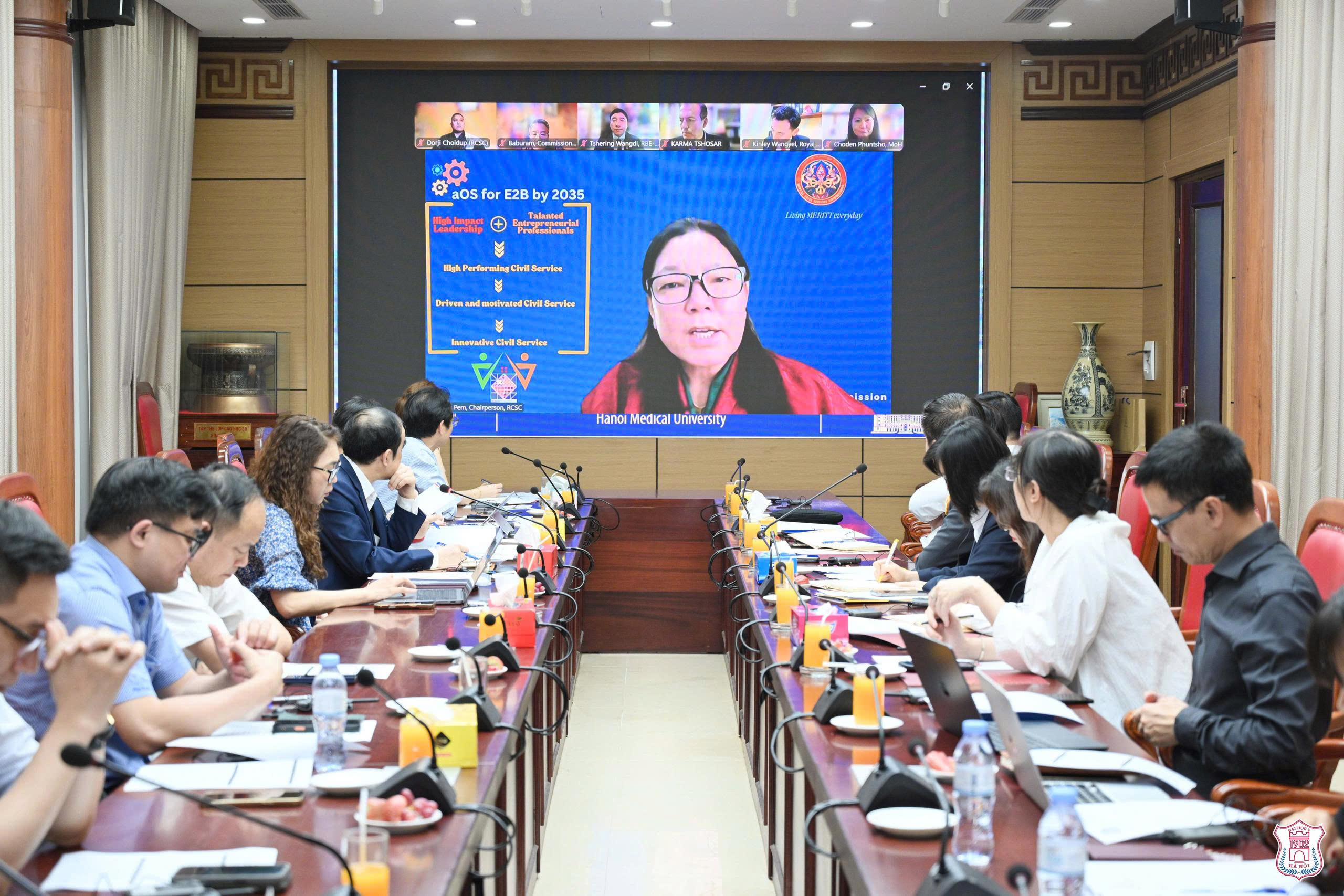 Phía Bhutan tham dự trực tuyến với sự hiện diện của bà Tashi Pem – Chủ tịch Ủy ban Dịch vụ Công Hoàng gia Bhutan cùng các đại diện ngoại giao và lĩnh vực y tế.